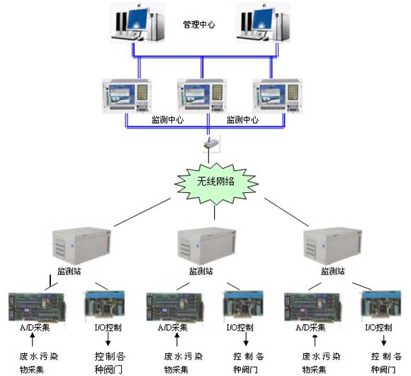 為提高水質(zhì)監(jiān)測(cè)能力建立了廢水在線監(jiān)測(cè)系統(tǒng),系統(tǒng)建成一個(gè)由污水排放監(jiān)測(cè)子站、監(jiān)測(cè)中心站和管理中心(城市環(huán)保局)組成的城市廢水監(jiān)測(cè)網(wǎng)絡(luò)系統(tǒng)。該系統(tǒng)可實(shí)現(xiàn)對(duì)企業(yè)廢水和城市污水的自動(dòng)采樣、流量的在線監(jiān)測(cè)和主要污染因子的在線監(jiān)測(cè);實(shí)時(shí)掌握企業(yè)及城市污水排放情況及污染物排放總量,實(shí)現(xiàn)監(jiān)測(cè)數(shù)據(jù)自動(dòng)傳輸;由監(jiān)測(cè)中心站的計(jì)算機(jī)控制中心進(jìn)行數(shù)據(jù)匯總、整理和綜合分析;監(jiān)測(cè)信息傳至城市環(huán)保局,由城市環(huán)保局對(duì)企業(yè)進(jìn)行監(jiān)督管理。