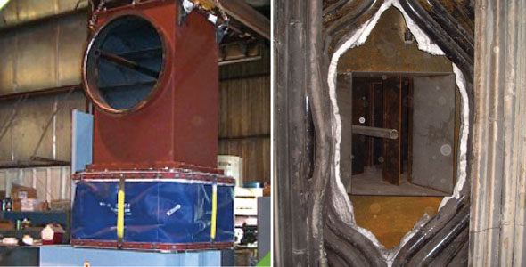 燃燼風端口做成耐火的“L”型, 通過一根310不銹鋼管輸送燃燒空氣,延長使用壽命。自動風門擋板控制裝置自行隨負載范圍的變化調整。