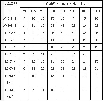 消聲裝置主要性能選用參考表: