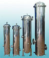 精密過濾器具有結構緊湊、操作簡便、通水量大、納污力強、 精度高等優(yōu)點,廣泛用于超純水、純水、軟化水等的過濾。常用的濾芯有熔噴濾芯、線繞濾芯 (又稱蜂房濾芯)、折疊濾芯和活性炭濾芯等。濾芯精度以微米(μm)計,有以下幾種規(guī)格:0.22μm、0.45μm、1μm、5μm、10μm、20μm、50μm、75μm、100μm,根據不同要求加以選用。 過濾濾芯一般使用3~6個月左右或進出水壓力差值(P2-P3)大于0.1MPa時更換,目的是確保預處理效果,使反滲透膜免于被顆粒、懸浮物損壞。