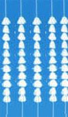 改型軟性填料采用紡搓地纖維繩串連壓有纖維絲均勻分布地塑料圓片,組成一定長度地單元纖維束,(詳見填料表示法)。改變和克服了原來的中心繩散絲打結(jié)、抗拉力不均勻、運(yùn)轉(zhuǎn)時易斷、纖維絲在水中難以橫向展開、分布不勻、偏向、生物膜結(jié)團(tuán)、實(shí)際比表面積低、使用壽命短等弊病。經(jīng)有關(guān)部門測定,改型后的軟性填料比原來的利用率提高一倍。