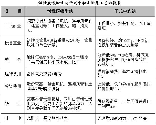 早期橡膠輪胎制造行業(yè)生產廢氣主要選用活性碳吸附工藝。隨著干式中和法的出現(xiàn),很好的解決了輪胎工藝廢氣除臭的難。下面就活性炭吸附工藝與干式中和工藝進行比較: