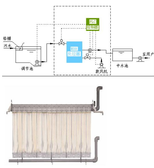 MBR模塊系統(tǒng)反應(yīng)器是中船重工719研究所與武漢大學(xué)技術(shù)合作開發(fā)的具有獨特知識產(chǎn)權(quán)的高效污水處理系統(tǒng)。該系統(tǒng)是生物化學(xué)工程與膜分離工程密切結(jié)合的污水處理工藝。系統(tǒng)通過膜分離工程代替了生物化學(xué)工程中的沉淀池,解決了傳統(tǒng)活性污泥發(fā)中出水水質(zhì)布穩(wěn)定的問題,以完美的固液分離得到安全穩(wěn)定的處理水質(zhì)。