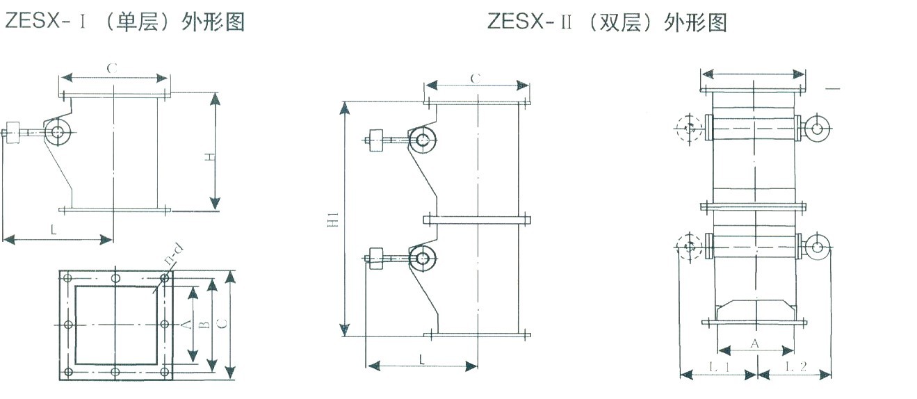 ZESX-I系列雙層重錘翻板卸灰閥技術(shù)性能及安裝尺寸: