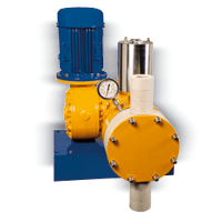 液壓隔膜計(jì)量泵,具有機(jī)械往復(fù)裝置。