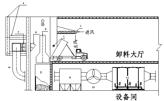 運(yùn)行結(jié)果表明,如此設(shè)計(jì)安裝能有效控制飛塵和惡臭氣體擴(kuò)散,卸料大廳內(nèi)沒有可察覺的臭味和飛塵。