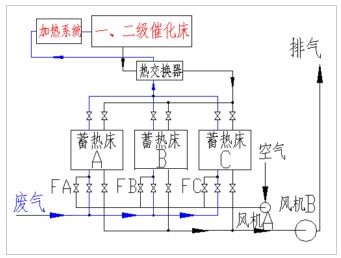 皇嘉環(huán)保多體連續(xù)型蓄熱式凈化系統(tǒng)工藝