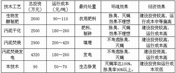 | 本技術(shù)與傳統(tǒng)污泥處置工藝方法比較表 |