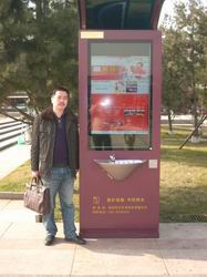 終端機(jī)的上方是一個(gè)52英寸的真彩屏LDD大型豎屏顯示器,游客可通過鍵盤操作,在屏幕上查詢相關(guān)的便民信息。如:本土的景點(diǎn)介紹;航空、鐵路、公交線路圖;政府發(fā)布時(shí)事信息及相關(guān)政策;新聞報(bào)紙信息等。
