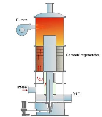 蓄熱式熱氧化器(Regenerative Thermal Oxidizer,以下簡(jiǎn)稱為RTO),是在熱氧化裝置中加入蓄熱式交換器,預(yù)熱VOC廢氣,在進(jìn)行氧化反應(yīng)。