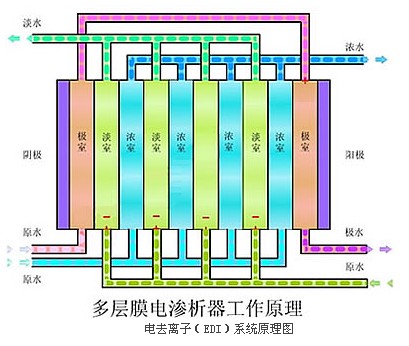 電去離子(Electrodeionization)簡稱EDI,是一種將離子交換技術(shù),離子交換膜技術(shù)和離子電遷移技術(shù)相結(jié)合的純水制造技術(shù)。屬高科技綠色環(huán)保技術(shù)。EDI凈水設(shè)備具有連續(xù)出水、無需酸堿再生和無人值守等優(yōu)點(diǎn),已在制備純水的系統(tǒng)中逐步代替混床作為精處理設(shè)備使用。這種先進(jìn)技術(shù)的環(huán)保特性好,操作使用簡便,愈來愈多地被人們所認(rèn)可,也愈來愈多廣泛地在醫(yī)藥、電子、電力、化工等行業(yè)得到推廣。