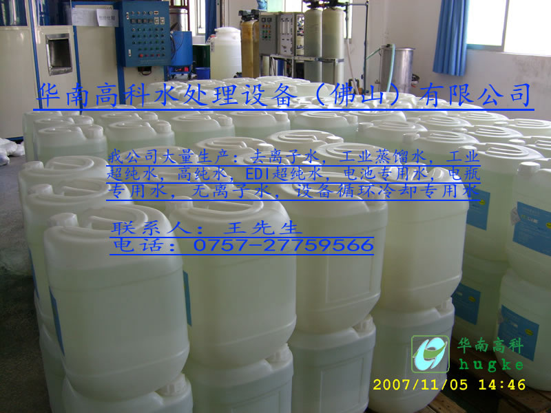 華南高科水處理設(shè)備(佛山)有限公司是一家專(zhuān)業(yè)從事水處理設(shè)備相關(guān)產(chǎn)品生產(chǎn),銷(xiāo)售的企業(yè)。為了滿足廣大用戶對(duì)小量高純水的需求,利用公司設(shè)備,根據(jù)用戶對(duì)水質(zhì)及用量要求,定量生產(chǎn)、銷(xiāo)售工業(yè)蒸餾水,工業(yè)去離子水(優(yōu)于蒸餾水),高純水。水質(zhì)最高可達(dá)到18兆歐姆。能充分滿足小型實(shí)驗(yàn)室用水,電池用水,清洗用水,醫(yī)藥用水,電子用水等不同行業(yè)的需要