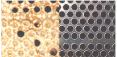 在鍋爐的進水管上安裝凈元除垢儀,2個月后鍋爐管壁上的水垢脫落并開始溶解。凈元系統(tǒng)還可應(yīng)用于為過程設(shè)備供應(yīng)冷水的循環(huán)冷卻系統(tǒng)。經(jīng)檢查發(fā)現(xiàn)冷卻塔壁上已經(jīng)存在的難以刮除的水垢在除垢儀的作用下變得松軟并且容易去除。如果幾周后停工,將會發(fā)現(xiàn)水垢已完全溶解。