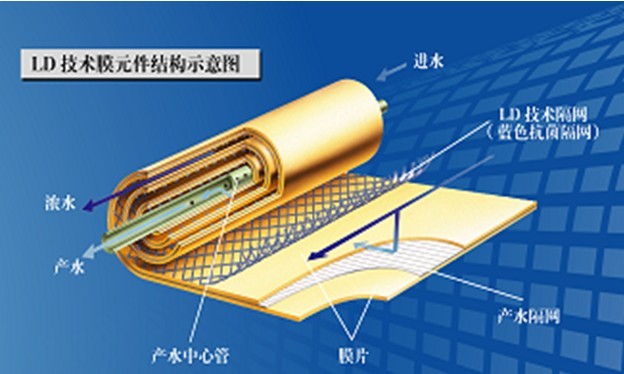新LD技術(shù)采用HYDRAblock TM技術(shù)對進(jìn)水隔網(wǎng)進(jìn)行了革新性的設(shè)計,采用不同于傳統(tǒng)隔網(wǎng)的結(jié)構(gòu)和材質(zhì),大幅提高了反滲透膜元件的抗生物污染性能,確保反滲透系統(tǒng)運(yùn)行更穩(wěn)定。LD技術(shù) 隔網(wǎng)為藍(lán)色,正在申請專利。全新結(jié)構(gòu)和材料的LD技術(shù),使反滲透膜元件在壓降低、污堵少的基礎(chǔ)上,又加強(qiáng)了抑制細(xì)菌滋生的能力,全面提高了膜元件的抗污染 性能。
