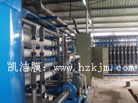 寧波康爾內(nèi)衣2500t/d印染廢水膜法處理回用“0”排放工程,由宜興某環(huán)保公司總承包,由凱潔膜公司負(fù)責(zé)RO前的CUF超濾膜系統(tǒng)的承包。此印染廢水超濾部分,當(dāng)時(shí)已經(jīng)過(guò)4家超濾公司的中試均已膜污染堵塞而失敗。凱潔膜公司采用X80高彈性抗污染膜料制成的KJ-ESUF9050膜元件并配合高強(qiáng)度反沖洗膜孔擴(kuò)張程序,取得重大成功。目前CUF超濾膜的出水SDI基本穩(wěn)定在0.45~1.0左右。對(duì)后續(xù)反滲透系統(tǒng)的正常運(yùn)行起決定性作用。