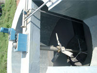 ZXS型旋流沉砂池除砂機由葉輪、轉動軸、電動機、減速器和提砂系統(tǒng)(泵提或氣提)等部分組成。由于葉輪旋轉時使池中污水作螺旋運動,加上因污水切向進入產生的與葉輪相一致的旋流,池中的污水形成渦螺流態(tài),在適當的葉漿傾角和線速度條件下,污水中的砂粒受到沖刷并仍保持最佳的沉砂效果,而原來附著在砂粒上的有機物質以及重量小的物質隨污水一同流出旋流池。另外,由于葉輪的旋轉,減少了旋流池因進水量變化導致流態(tài)變化的敏感程度,因此保證了沉砂效果的穩(wěn)定,底部沉砂由泵提或氣提排出。