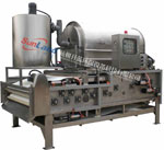 本機在帶式壓榨脫水機的基礎(chǔ)上增加了一套轉(zhuǎn)鼓離心濃縮機系統(tǒng),其主要性能特征如下: