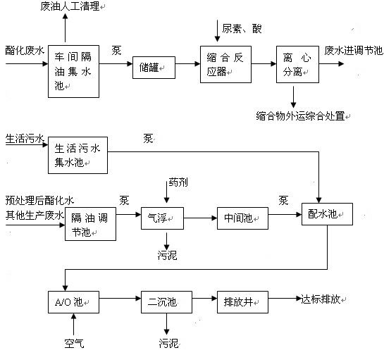 綜合廢水生化處理及后處理工藝流程圖