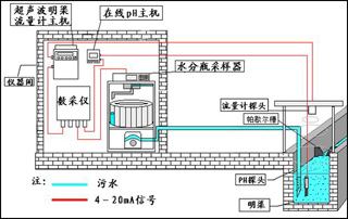 該系統(tǒng)對(duì)污染源排放量和污處設(shè)施的監(jiān)控均與前面介紹的相同,對(duì)廢水中PH和COD值均采用不定期自動(dòng)抽檢的方式進(jìn)行,大多數(shù)中小企業(yè)均上有污水處理系統(tǒng),對(duì)其是否正常進(jìn)行,以使排放口的水質(zhì)達(dá)到國(guó)家排放標(biāo)準(zhǔn),在排污口不定期自動(dòng)抽取水樣進(jìn)行分析加以監(jiān)督是十分必要的。為了方便監(jiān)管人員24小時(shí)隨時(shí)抽樣,我公司的分瓶水采樣器在功能上做得十分完善,監(jiān)管人員在自己的機(jī)房?jī)?nèi)可根據(jù)需要遠(yuǎn)程操作、設(shè)定,可在聯(lián)網(wǎng)的任何企業(yè)、任何埋單、采用任何方式采取水樣,該采樣器的溫度可衡定在5℃以下,監(jiān)管人員可在方便的時(shí)候前去取樣,而不必?fù)?dān)心水樣變質(zhì),因此使用十分便捷,在企業(yè)的排污口設(shè)置一個(gè)對(duì)廣大中小企業(yè)的排污濃度的監(jiān)管,具有較大的威懾力。