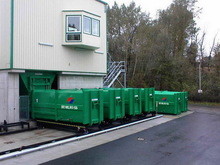 壓縮式生活垃圾轉(zhuǎn)運(yùn)站成套設(shè)備主要由垃圾壓裝機(jī)、垃圾集裝箱和移位系統(tǒng)組成,與專用的鉤臂式垃圾轉(zhuǎn)運(yùn)車或集裝箱式垃圾轉(zhuǎn)運(yùn)車配套使用,車廂可卸式垃圾車(俗稱鉤臂車或拉臂車),是國內(nèi)目前使用最廣泛的垃圾轉(zhuǎn)運(yùn)車輛之一。完整的垃圾收集轉(zhuǎn)運(yùn)系統(tǒng)還包括垃圾間、液壓站、電氣控制、通風(fēng)除臭和污水排放等環(huán)境保護(hù)設(shè)施。