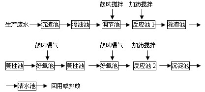 廢水→預(yù)處理→收集→預(yù)處理→(A/O)n生化處理→沉淀→達(dá)標(biāo)排放
