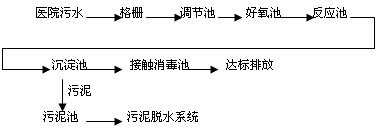 污水→一經(jīng)預(yù)處理→收集→二級預(yù)處理→三級消毒處理→達(dá)標(biāo)排放