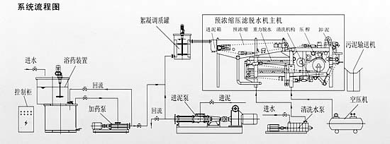 帶式濃縮壓濾機(jī)是由帶式濃縮脫水段和帶式壓榨過(guò)濾段這兩部分組成的,為了提高污泥的脫水性,改良濾餅的性質(zhì),增加物料的滲透性,應(yīng)對(duì)污泥進(jìn)行化學(xué)調(diào)理。