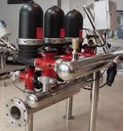 控制器控制閥門改變水流方向。盤片被松開(kāi),位于盤片中央的噴嘴沿切線噴射,使盤片旋轉(zhuǎn),盤上截留的固體物被沖洗出去。