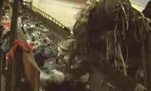 城市生活垃圾由汽車運(yùn)至垃圾處理廠內(nèi)的高位平臺(tái),由垃圾預(yù)處理系統(tǒng)進(jìn)行預(yù)處理,預(yù)處理裝置一方面可打碎特大垃圾塑料袋、木板木條、玻璃瓶、磚塊等雜物,另一方面對(duì)垃圾進(jìn)行除鐵處理,然后將垃圾輸送至半封閉式垃圾儲(chǔ)存庫(kù),再用抓吊抓至給料斗,經(jīng)給料裝置均勻給入垃圾焚燒爐內(nèi)。給料情況采用工業(yè)電視監(jiān)視。