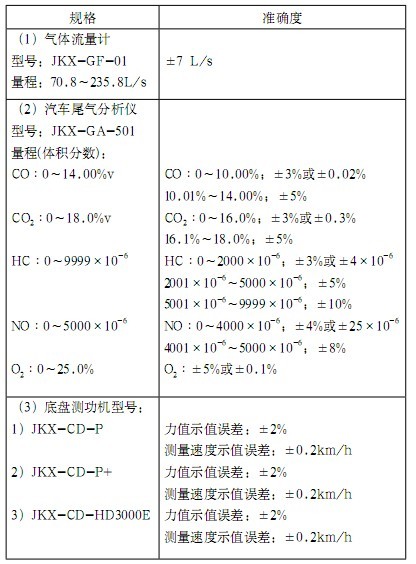 底盤測(cè)功機(jī)、汽車尾氣分析儀、流量計(jì)、計(jì)算機(jī)控制系統(tǒng)、空氣壓縮機(jī)、冷卻風(fēng)機(jī)、司機(jī)助手儀、安全裝置等。