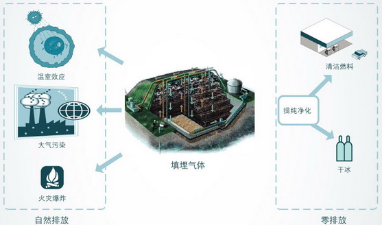 有機(jī)生活垃圾適宜的處理方式有填埋和厭氧消化兩種方法,而有機(jī)垃圾在處理的過(guò)程中,會(huì)產(chǎn)生大量的填埋氣/沼氣。一方面填埋氣/沼氣容易引發(fā)火災(zāi)、爆炸、造成異味,還對(duì)全球變暖有重要作用;另一方面,填埋氣/沼氣中含有50%-70%的甲烷,熱值可達(dá)4500-5000kcal/Nm3,經(jīng)處理后可作為清潔能源。