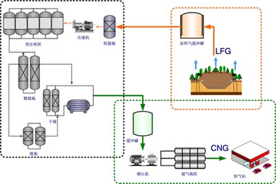 中國(guó)第一個(gè)填埋氣制取CNG工程(12000Nm3/d)