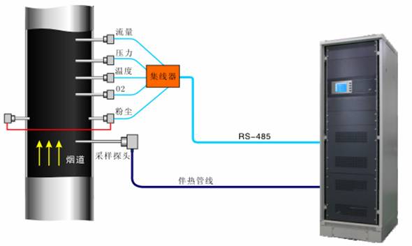 煙氣排放連續(xù)監(jiān)測系統(tǒng)適用于各種鍋爐連續(xù)廢氣排放量的監(jiān)測,采用直接抽取法,可以連續(xù)在線監(jiān)測顆粒物的濃度、二氧化硫(SO2)濃度、氮氧化合物(NOX)濃度、氧氣(O2)含量、煙氣溫度、煙氣壓力、煙氣流速,還可以增加CO、CO2、HCL、HF、NH3、CHX、濕度等參數(shù)的測量。測量結(jié)果以標準的4~20mA信號、RS485和ModBus形式輸出。