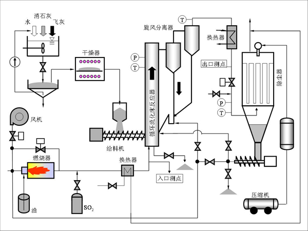 脫硫通過水合鈣基脫硫劑在反應器內(nèi)的循環(huán)實現(xiàn),脫硝通過向反應器內(nèi)噴入氨完成,并可同時脫除煙氣中的氯等腐蝕性氣體和砷、硒等有害痕量元素。