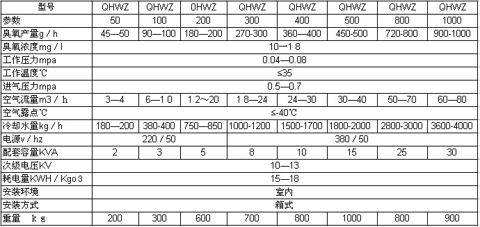 QHWZ系列50g-1000g發(fā)生器技術(shù)參數(shù):