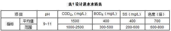 根據(jù)建設單位提供的廢水水質(zhì),確定設計進水水質(zhì)見表1。