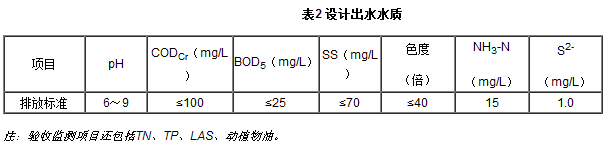 設計出水水質(zhì):達到《紡織染整工業(yè)水污染物排放標準》(GB4287-1992)表3一級標準,主要指標見表2。
