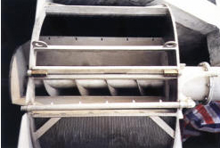 結(jié)構(gòu)及工作原理:設(shè)備與水平面呈35°安裝在水渠中,污水從鼓的端頭流入鼓中,水通過(guò)柵網(wǎng)的柵縫流出, 固體垃圾被過(guò)濾在柵網(wǎng)筐內(nèi),帶有耙齒的清潔臂在圓周運(yùn)動(dòng)時(shí)清理格柵縫隙,耙齒伸入柵網(wǎng)中,將固體取出,當(dāng)清潔臂處于最高點(diǎn)時(shí),通過(guò)水的沖洗及擋渣板的作用, 將垃圾從耙齒上清除下來(lái),并掉入垃圾收集裝置螺旋輸送斗中,在輸送過(guò)程中通過(guò)變螺距的作用被脫水,在最上端壓縮區(qū)被擠干,而擠壓水被回流至水渠, 垃圾最后送入集裝箱或后繼設(shè)備,再進(jìn)行處理。