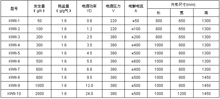 KW系列高效混合消毒劑發(fā)生器由電解槽、直流電源、鹽溶解槽及配套管道、閥門、儀表等組成。