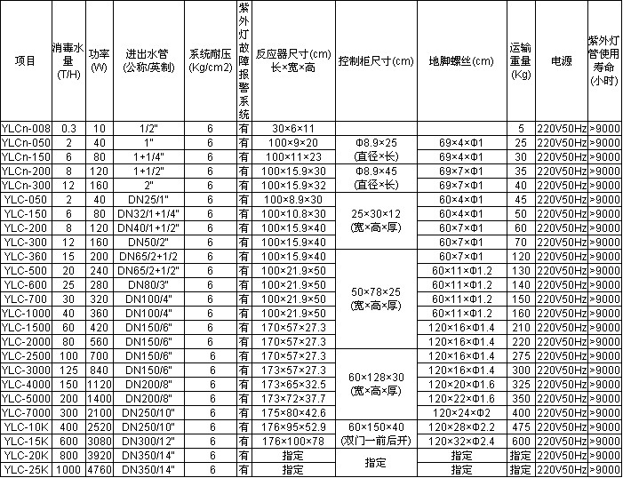 (5) 污水:根據(jù)殺菌要求,進入處理設(shè)備的水質(zhì)其1cm的透射率(T254):≥40%;其它要求滿足國家《污水綜合排放標準》GB8978-1996中的二級標準。