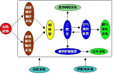 ![]() 凈之杰多功能回轉窯危險廢物處理系統(tǒng)組成框圖 |