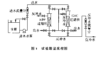 目前KDF介質(zhì)主要有兩種產(chǎn)品:KDF55和KDF85?KDF55是50%銅和50%鋅的合金,顏色金黃,呈顆粒狀,大小為0.145~2.00mm,表觀密度為2.4~2.9g/cm3,對去除氯及可溶性重金屬最有效?KDF85是85%銅和15%鋅的合金,顏色為紅褐色,呈顆粒狀,大小為0.149~2.00mm,表觀密度為2.2~2.7g/cm3,對去除鐵和硫化氫等最有效?試驗采用KDF55金屬濾料?