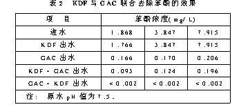 KDF與GAC聯(lián)合使用去除苯酚的相關(guān)試驗結(jié)果如表2?