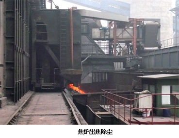 攔焦機(jī)、爐頂導(dǎo)煙車、機(jī)側(cè)爐門煙氣均通過移動(dòng)通風(fēng)槽,在焦?fàn)t北側(cè)端頭匯合,經(jīng)過蓄熱式火花捕集器,再進(jìn)入布袋除塵器,凈化后的氣體經(jīng)風(fēng)機(jī)、煙囪排入大氣。布袋除塵器收集的粉塵經(jīng)星形卸灰閥、埋刮板機(jī)、中間灰倉、無塵裝車機(jī),由汽車外運(yùn)。