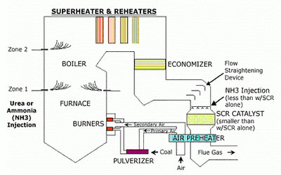 SNCR/SCR工藝降低了對催化劑的依賴,使用少量的催化劑降低了由于硫中毒、顆粒污染和其它類型老化而更換催化劑的成本。在一些工程中,催化劑可以裝入鍋爐煙道、擴展煙道、省煤器或空氣預熱器中。