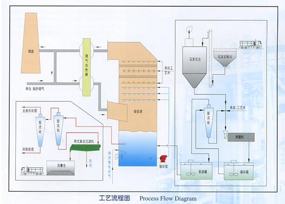 系統(tǒng)組成:煙氣系統(tǒng),吸收塔系統(tǒng),石灰石漿液制備與供應(yīng)系統(tǒng),石膏脫水系統(tǒng),電氣及控制系統(tǒng),廢水處理系統(tǒng)