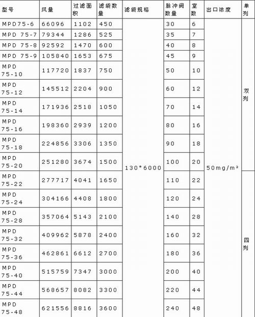 MPD長袋脈噴袋式除塵器技術(shù)參數(shù):