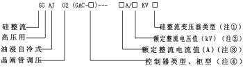按<<半導體變流器型號編制方法(JB1505-75)>>相關(guān)定義,本產(chǎn)品的型號及含義如下: