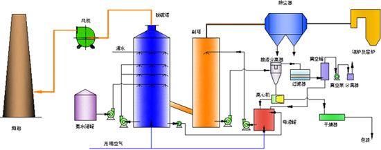 8. 系統(tǒng)無三廢產(chǎn)生:“廢氣” 達(dá)標(biāo)排放;水全部循環(huán),沒有“廢水”排放 ;“廢渣”為經(jīng)濟(jì)價值很高的硫酸銨產(chǎn)品。