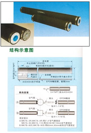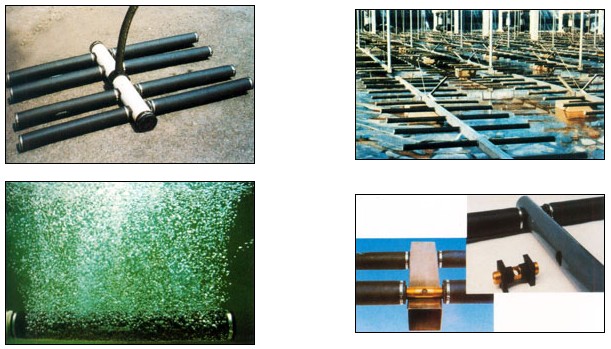 HyotubeTM-7系列管式曝氣器簡(jiǎn)單并且可靠,用一個(gè)彈性橡膠膜片覆蓋在一根支撐管上,膜片開有很多呈現(xiàn)弧狀凸起的“1”形微孔。膜片兩端用單耳遞緊型箍緊夾固定在